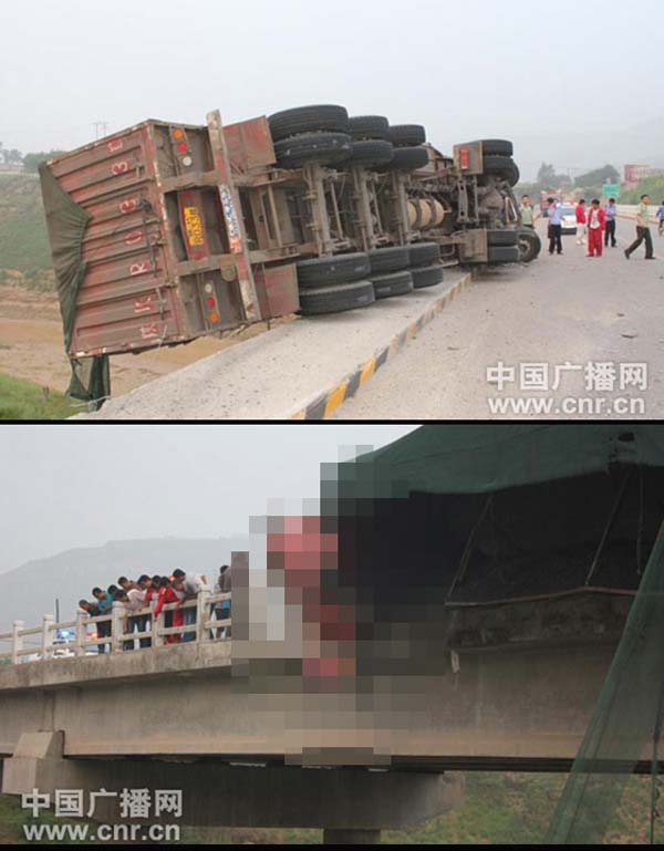 Sekali lagi kita ke China untuk segmen berpantang maut sebelum ajal. Kali ini kita melihat bagaimana Dong Yinan, seorang pemandu lori yang terselamat dari maut walaupun trak yang dipandu beliau hampir jatuh kedalam gaung, Kejadian berlaku di pekan Xuanma , Provinsi Gansu. Dong Yinan sedang memandu trak yang kemudian melanggar tepi sebuah jambatan. Malang bagi Dong Yinan trak mula terbalik dan beliau tercampak keluar. Nasib beliau baik kerana kaki beliau tersepit diantara lori dan jambatan, Sementara menanti diselamtakan beliau berpaut pada badan lori selama 3 jam! Gila sadis. Menurut laporan media China, Dong Yinan kini dirawat di hospital kerana hanya patah kaki. Lucky guy. Mesti banyak semayang punya olang!